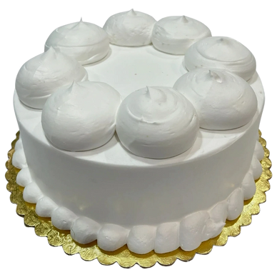 Traditional white cake with tres Leches layers. Vanilla buttercream frosting with fluffy dream pillows.